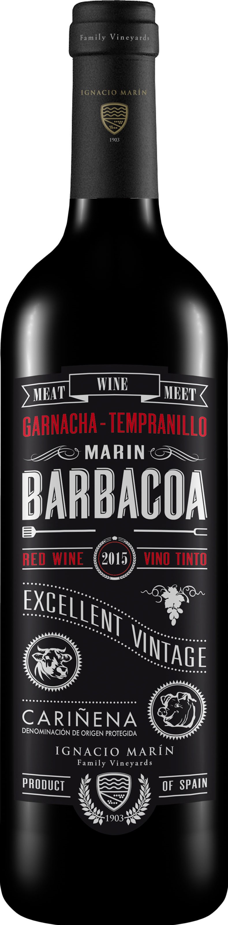 A vinícola Ignacio Marín foi fundada em 1903, na Espanha. De geração em geração têm dedicado experiência desde o trabalho que se inicia na vinha até o engarrafamento. Os vinhedos da propriedade encontram-se na DOP Cariñena, a uma altitude média de 600 metros, na zona de influência geográfica do Vale do Rio Ebro. Nesta região, os solos são pedregosos e o clima é mediterrâneo com variação térmica importante entre o dia e a noite. Barbacoa é um daqueles vinhos certeiros, elaborado com as uvas Cariñena, Garnacha e Tempranillo, oriundas de vinhedos localizados em Encinacorba e Cariñena. É autêntico, de coloração rubi, halos violáceos e de grande limpidez. O nariz é intenso, entrega frutas vermelhas e negras, entre elas, framboesas, mirtilos e ameixas, acompanhadas por sutis toques de tabaco e especiarias. O palato é bem resolvido, seco, de boa estrutura, taninos no lugar e boa acidez. É possível sentir o frutado característico da Garnacha, num estilo jovem e equilibrado. Por fim, um vinho que atende a muitos requisitos, agradável, bem elaborado e de ótimo custo x benefício. Harmonização: É bastante versátil, aceita diversos tipos de pratos. Deixe seu cotidiano alegre e saboroso com uma garrafa de Barbacoa e um delicioso sanduíche de pernil. Prove também com Jamón, maminha na brasa com legumes grelhados e costelinha suína. Um saboroso churrasco ficará espetacular, esse é o tipo de vinho que poderíamos chamar de ‘’Coringa’’ em restaurantes de carne onde ficamos indecisos na hora da escolha do mesmo. Aprecie a 17°C em taças lisas, cristalinas e de grande porte. O exemplar está pronto para o consumo, mas pode ser degustado ainda em seu ápice até fins de 2028.