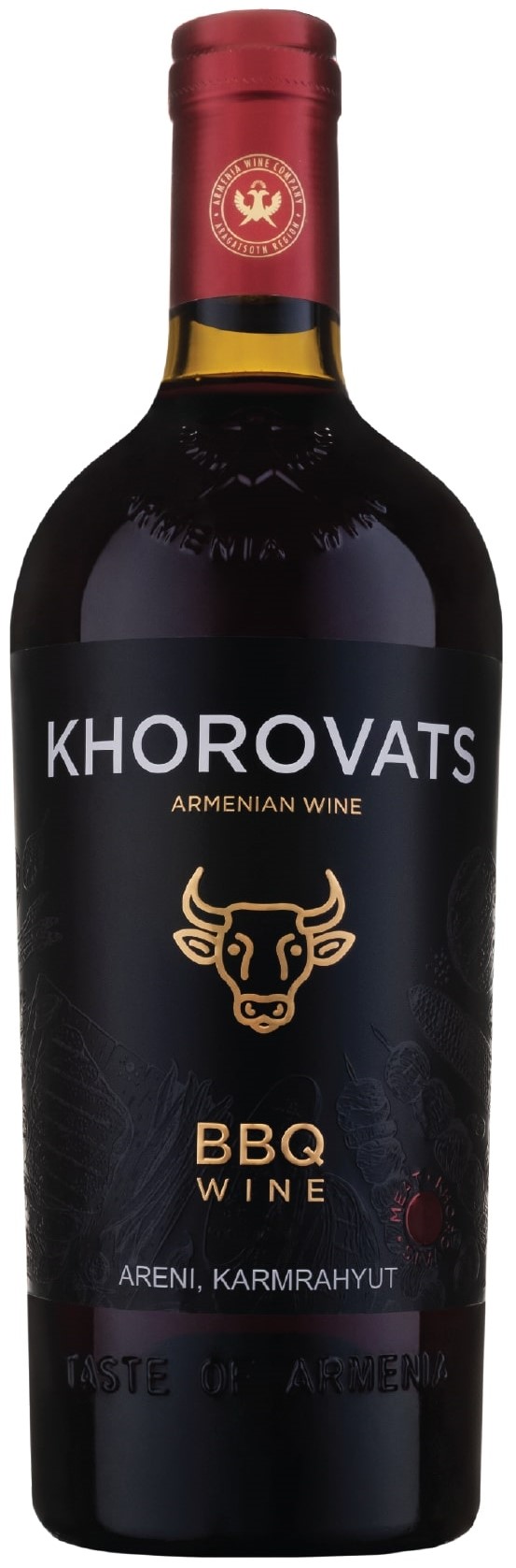 Khorovats BBQ Areni & Karmrahyut se apresenta com bela acidez, seus 13% de álcool estão bem integrados e os taninos são macios e gentis, graças ao processo de vinificação que mescla os conhecimentos milenares da elaboração de vinhos na Armênia, com as técnicas e equipamentos modernos. Khorovats cai como uma luva no gosto de quem quer um vinho ideal para um churrasco com os amigos!